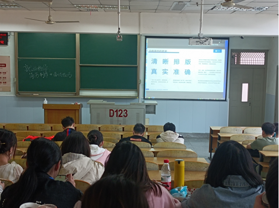 讲座伊始,李经理以“求职第一课”为题讲解了在求职之前需要做的准备工作。李经理以个人简介联想为例,引发同学们对于简历的思考。如何让简历快速的吸引住HR的目光是进行求职的第一步。接着李经理,以合格简历和不合格简历做对比,提出了一份合格的简历应该满足“简历五重奏”以及打造简历“六原则”的简历写作方法。最后李经理从面试前的准备、面试过程、面试结束后3个阶段分别介绍了面试中需要注意的技巧。并提醒同学们,现在行业内卷越来越严重,希望同学们主动出击,积极拥抱秋招、春招,不要在坐等offer。
