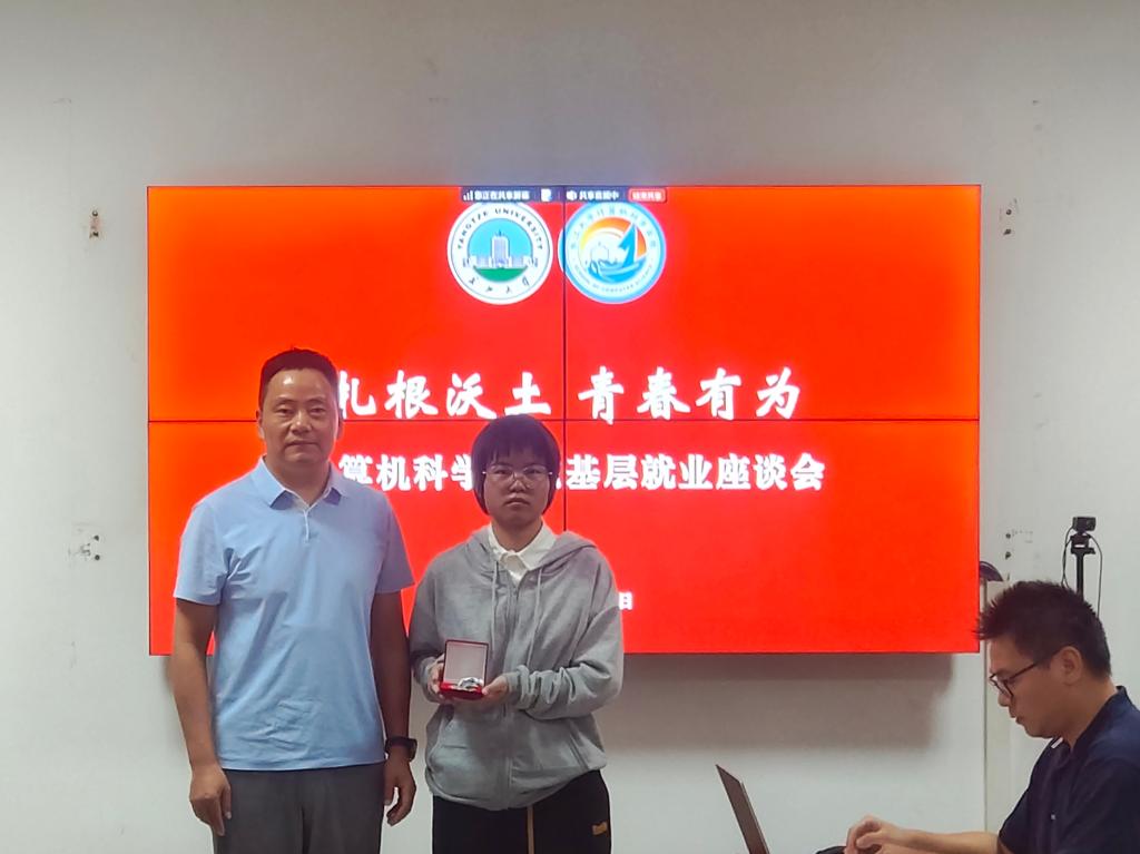 6月20日,我院在4教307举办“扎根沃土・青春有为”基层就业座谈会。本次座谈会旨在鼓励青年学子响应时代号召,将个人理想融入国家发展大局,投身基层就业实践。计算机科学学院党委书记郑健、副院长詹炜等学院领导,学工办主任、年级辅导员及就业辅导员出席会议,同时还邀请了多位基层就业代表校友,30位计算机科学学院有意基层就业的学生代表参与了此次活动。 座谈会伊始,计算机科学学院副院长詹炜为活动致辞,他饱含深情地阐述了基层就业的重要意义与发展方向,为在场学子点明奋斗方向。随后,进入“金骆驼”代表颁奖环节,学院党委书记郑健为荣获该称号的基层就业先锋颁奖,表彰他们用行动诠释担当、用奉献书写青春的精神。 为让学生更深入了解基层就业政策与实际情况,现场播放了15分钟的政策解读及基层就业宣传短片,生动展现了基层就业的广阔前景与发展机遇。在经验分享环节,来自不同地区的基层就业毕业生代表带来了精彩讲述。通过线上连线,在重庆市成都东软学院的研究生基层就业毕业生代表谢江、在吉林省参与西部计划的本科生基层就业毕业生代表高昕分享了他们的基层工作经历;现场,在新疆维吾尔自治区参加西部计划的本科生基层就业毕业生代表喻雅芬也结合自身感悟,分享了基层工作的点滴,让在场学子感同身受。 在互动交流环节,同学们就基层就业的政策、工作内容、生活情况等踊跃提问,嘉宾与领导老师耐心解答,进一步加深了学生对基层就业的全面认识。最后,学院党委书记为本次座谈会作总结发言,他鼓励同学们以优秀毕业生为榜样,勇敢奔赴基层,在祖国的广袤沃土上绽放青春光彩。 座谈会结束后,全体人员进行合影留念,为这场充满收获与感动的活动留下珍贵回忆。此次座谈会的成功举办,不仅为有意向投身基层就业的学生提供了宝贵经验与指导,更激发了青年学子扎根基层、服务社会的热情与决心。