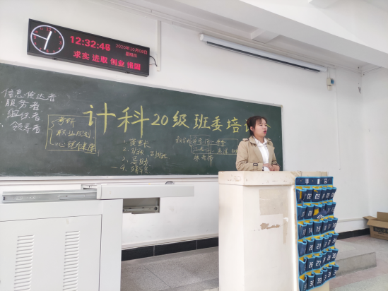 2020年10月8日中午11:50,计算机科学学院在西校区7教210教室顺利开展新生学生干部培训会。参会人员有:计科院20级辅导员张颖旭,兼职辅导员谭京红,以及我院近50名20级学生干部。
