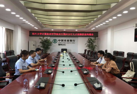 2020年9月2日15:00,农业银行荆州分行与计算机科学学院人才招聘信息沟通会在农业银行荆州分行办公室成功举行。此次招聘主要面向计算机及相关专业的2021届应届毕业本科生、研究生。参与此次会议的有农业银行荆州分行信息技术管理部总经理胡刚、高级专员刘自成、产品经理张之涵,304永利集团登录入口计算机科学学院就业专干余珺瑞、应届毕业研究生丁程程。