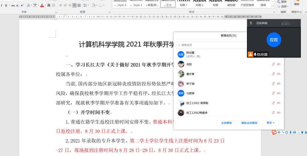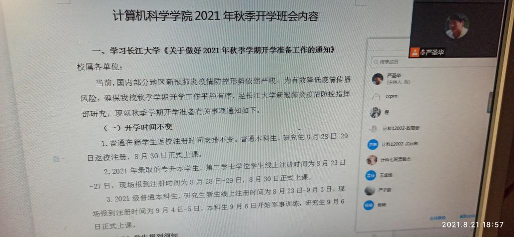 本次主题班会活动从学习304永利集团登录入口《关于做好2021年秋季学期开学准备工作的通知》、特殊情况不能正常返校的学生办理请假手续、疫情防控及安全教育、学风教育四个方面对2021年秋季开学工作做了统一的安排和部署: