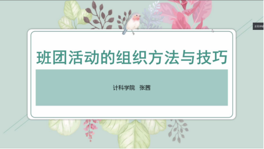 随后,由张茜老师作出分享,她详细地介绍了班团活动的内涵,目的和意义及组织班团活动的要点。她指出,班团活动能够增强班集体的凝聚力,提升班级的综合素质。但是想要办好一次班团活动并不容易,活动要有充足的准备,在进行活动时各班委也要勇于担当,让活动能有序进行。