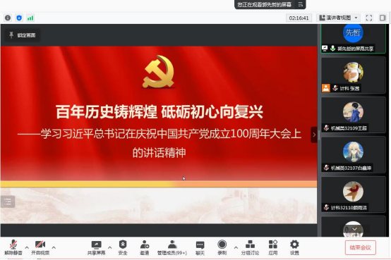 最后郭先哲老师从个人学干经验和习近平总书记“七一”精神出发,进行思想政治理论培训。他强调作为学干政治立场要明确,要在其位谋其政,对自己有严格的要求;作为新青年,要努力发光发热为祖国奉献青春。最后,他号召:“让我们不负青春,不负韶华,不负时代,为中华民族伟大复兴贡献自己的力量吧!真正的发出属于自己的青春誓言,请党放心强国有我!”至此,本次培训圆满结束。