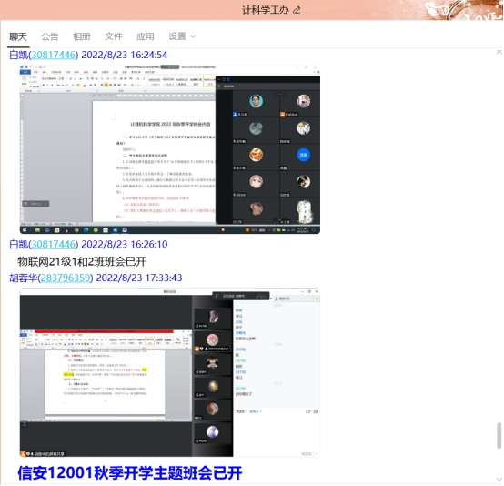学院对本次教育活动高度重视,召开了专门的辅导员会议,讨论主题班会内容,并形成了《计算机科学学院2022年秋季学期开学班会内容》,为顺利传达学校相关要求打好基础。同时也对班主任召开班会的完成情况提出了具体的要求。