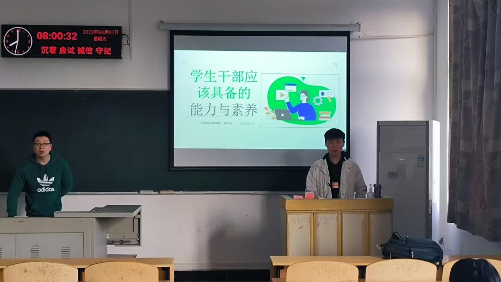 为深入学习贯彻党的二十大精神,提高学生干部的思想道德素质和服务师生能力,增强学生干部工作的凝聚力和战斗力,充分发挥学生干部在学校各项工作中的模范带头作用、榜样示范作用、桥梁纽带作用和得力助手作用,同时为学生干部更快更好的成长成才创造更多的机会和搭建更广阔的平台,3月31日下午,计算机科学学院组织开展学生干部初级培训。本次培训由学工办郭帅老师主持,主讲人为计算机科学学院学工办蒋代运老师、304永利集团登录入口社团联合会主席团成员余宗懋、计算机科学学院学生会执行主席蔡俊杰,培训会议在西校区7教501举行。院团委学生会干事、青年志愿者支队干事、各班团支部书记、团支部副书记参加了培训。