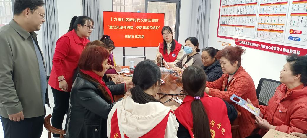在十方庵社区新时代文明实践站,志愿者们积极与社区居民互动,向他们介绍了手工制作和绘画的基本技巧。志愿者们耐心引导居民们使用不同的材料和色彩,创作出别出心裁的作品。在交流互动中,志愿者们与居民们建立起深情厚谊,共同感受到艺术无与伦比的魅力。