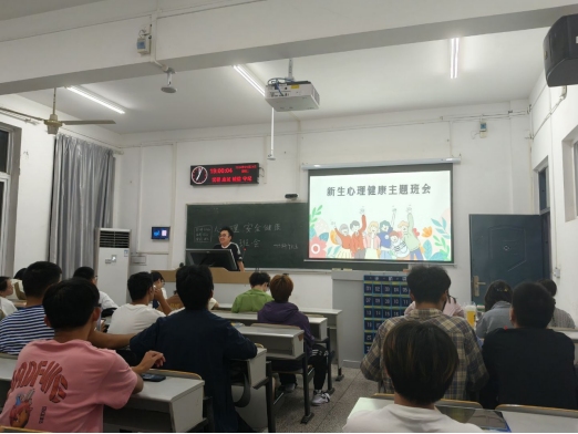 在新生心理主题班会中,班主任先从认识心理健康引入,让同学们分享入校以来的生活学习情况。然后班主任对大学生常见的心理问题进行了举例,鼓励同学们把握好大学时光,多跟同学、朋友、老师交流。最后,班主任也对学校心理健康体系做了简短介绍,让同学们明白遇到困难时该如何求助。