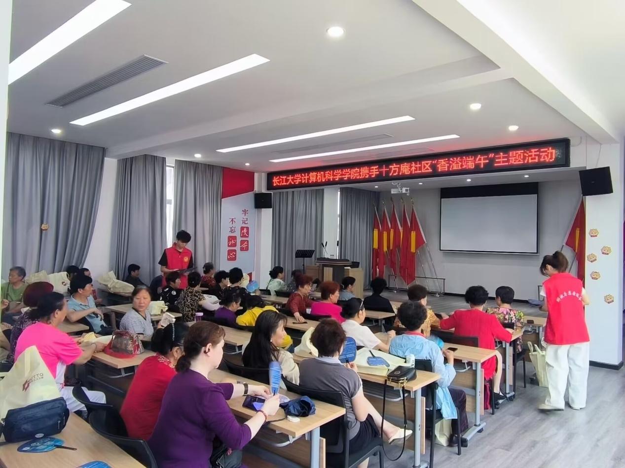 2024年6月6日,计算机科学学院青支队携手十方庵社区,开展了“香溢端午”主题活动。此次活动旨在弘扬中华传统文化,增进社区居民之间的感情交流,同时也为社区老年人带去了节日的关怀与温暖。
