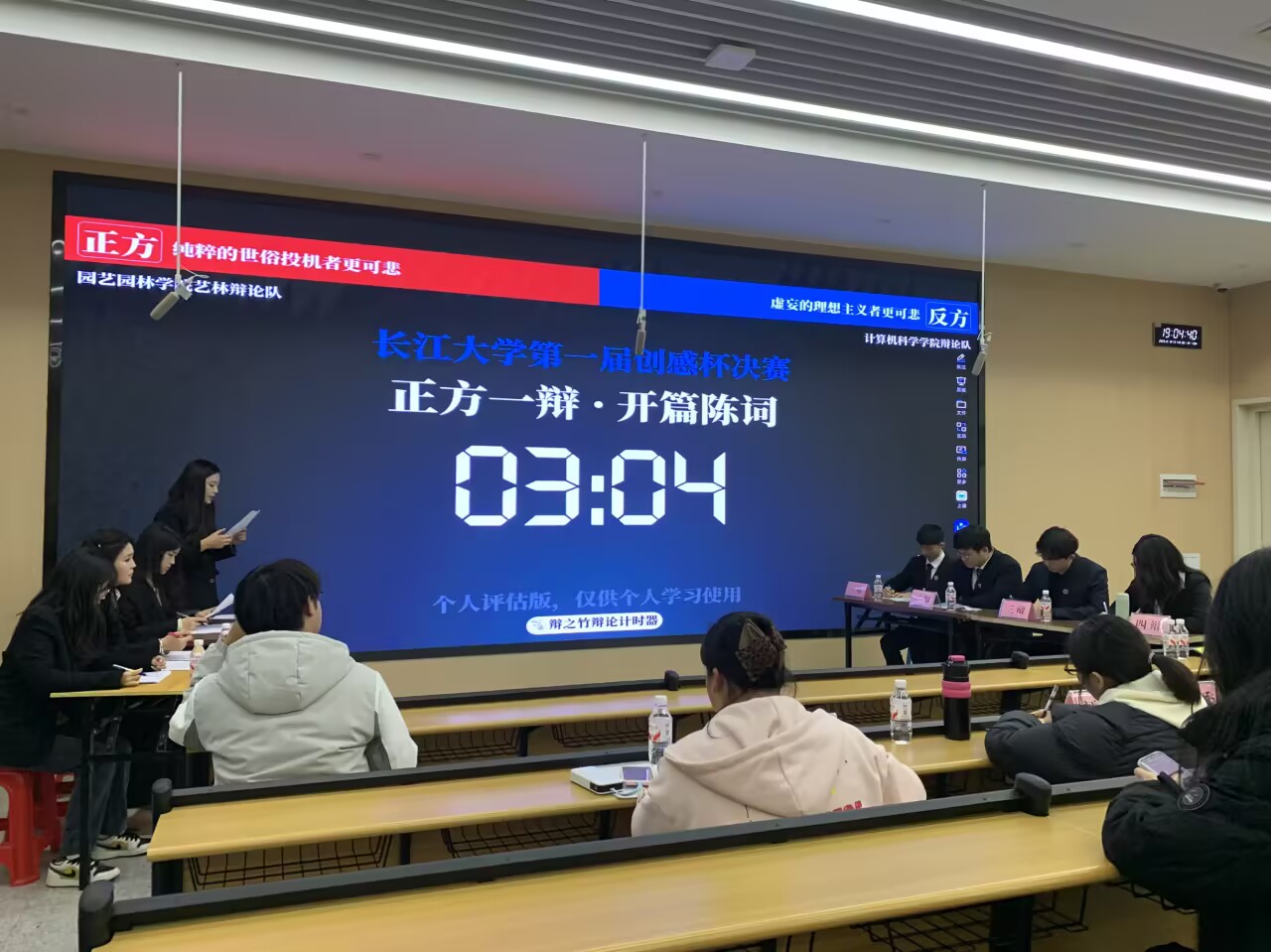 比赛现场,我院辩论队(反方)与园艺园林学院辩论队(正方)围绕“纯粹的世俗投机者更可悲/虚妄的理想主义者更可悲”展开深度博弈,从“个体价值的异化”到“社会秩序的消解”,双方攻防密集、火花四溅。