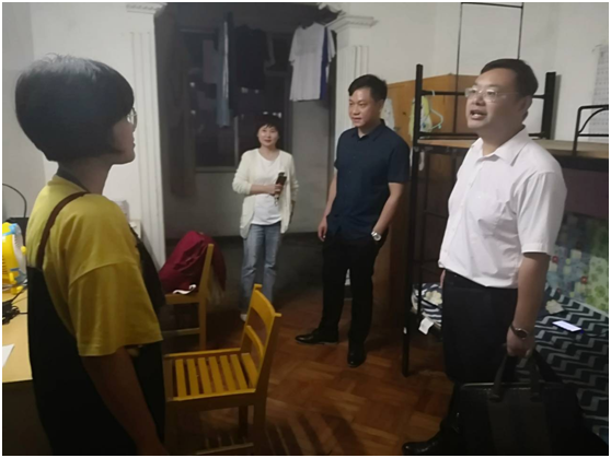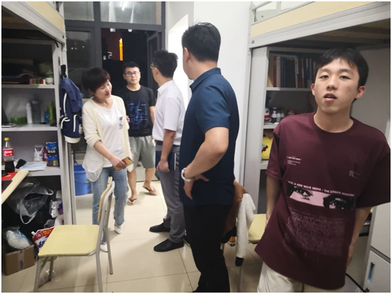 9月19日晚上8点,计算机科学学院院长崔艳荣、副院长宋文广、学院党委副书记颜学俊、研究生辅导员付盈主任走访2019级全体硕士研究生的学生宿舍,深入了解他们的思想、学习、生活、安全、卫生等情况。
