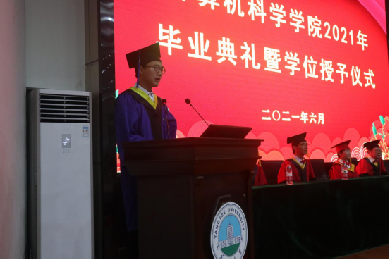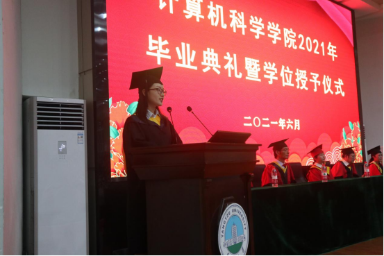 (通讯员张君豪 张茜)奋斗青春路,启航新征程。6月17日晚20:00,计算机科学学院2021年毕业典礼暨学位授予仪式在12教405举行。学院全体领导、各系部导师代表、班主任代表、全体辅导员以及学院300余名毕业生参加典礼,共同见证这一难忘时刻。