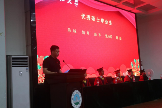 伴随着温馨的暖场视频,典礼正式开始,全体成员起立奏唱国歌。学院党委副书记颜学俊宣读了2021届优秀毕业生表彰文件,今年学院共有24名本科生和5名研究生被评为“304永利集团登录入口优秀毕业生”。