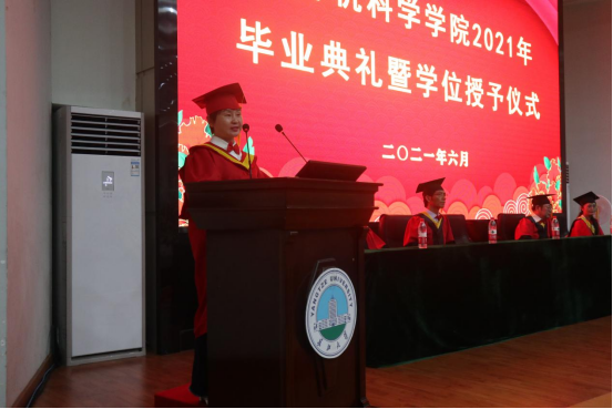 教师代表雷鸣老师发言回顾了与同学们朝夕相处四年来的点点滴滴,希望他们在未来的日子里不断丰富自己、完善自己,做到知行合一,成为一个引领和推动社会进步发展的人。院长崔艳荣教授向毕业生们表示祝贺,用三句话寄语同学们:一是怀瑾握瑜,抱诚守真,做个德馨之人;二是霁月光风,不萦于怀,做个豁达之人;三是心之所向,素履以往,做个奋斗之人。