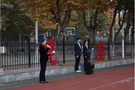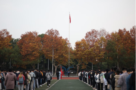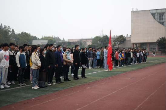 (通讯员 刘凯 付佳瑞/摄 周可心 张茜/文)11月1日上午7时,计算机科学学院在东校区田径场举行了升国旗仪式暨“千班唱红歌,万人接力跑”活动。出席本次活动的有学院党委书记黄群俊、党委副书记颜学俊、学工办全体辅导员以及学院东校区的全体同学,升旗仪式由计科11904班张优主持。