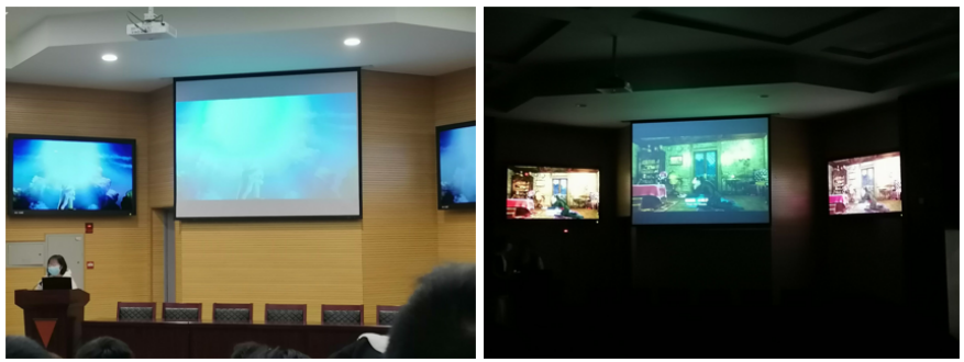 首先开展的是观影活动,此次活动在东西校区分别展开。观看影片选取的是《精灵旅社》。在入场之前,学院安排专人做好体温监测工作,严格执行常态化疫情防控形势下的各项要求。观影前,由院学生会主席团成员对电影做简单介绍,观影全程佩戴口罩,观影结束后,由学生会组织影评小游戏,放松身心。
