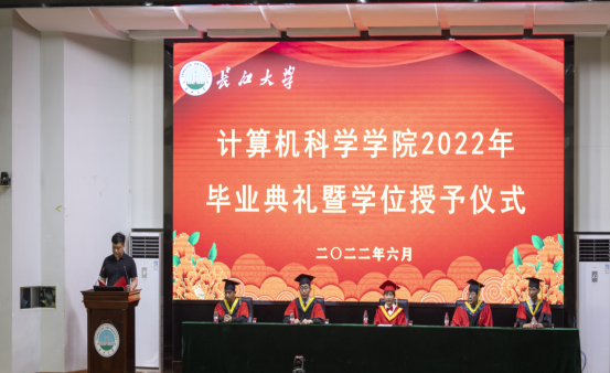 (通讯员周可心 赵均溢 张茜)拨穗正冠,再启征程。6月14日,计算机科学学院2022届毕业典礼暨学位授予仪式在12教405隆重举行。学院全体领导、各系部导师代表、班主任代表、全体辅导员以及学院200余名毕业生参加了本次典礼。