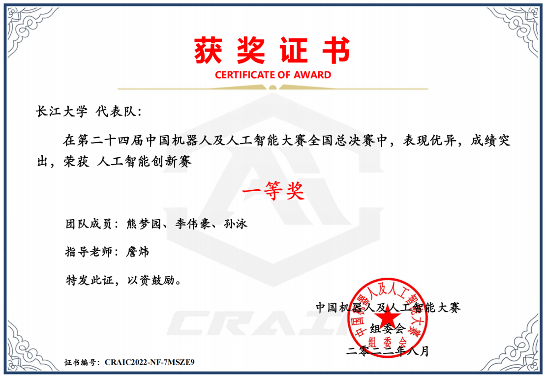 (通讯员 熊梦圆)近日,第二十四届“中国机器人及人工智能大赛”全国总决赛在线上举行。本次大赛,我院研究生团队的“智慧航运——无人机智能船舶水尺读数系统”和“智慧巡检——基于移动端的无人机对地小目标检测与应用”两项作品分别获得全国一、二等奖,展示了长大计科学子在“人工智能+”应用领域的创新实力。