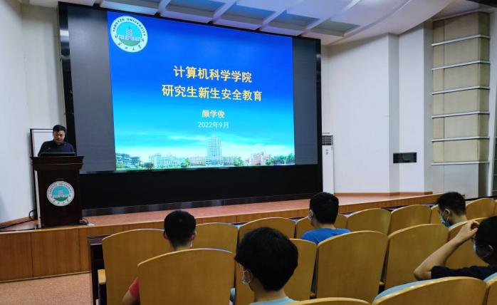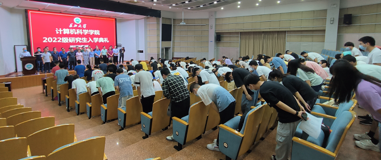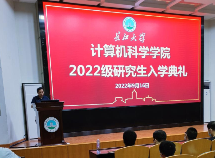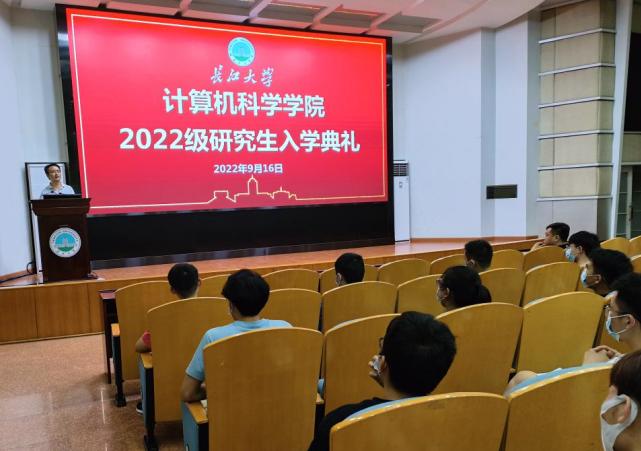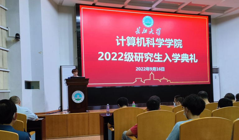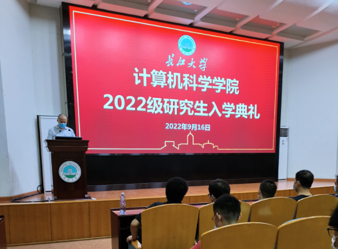 金秋时节,丹桂飘香。2022年9月17日晚19:00,计算机科学学院2022级硕士研究生入学典礼暨安全教育大会在东校区12教405报告厅举行。学院院长崔艳荣、党委书记黄群俊、副院长宋文广、副院长詹炜、党委副书记颜学俊、2022级硕士研究生导师、研究生辅导员付盈、研究生教学秘书黄静及2022级全体在校研究生参加典礼。此次典礼由2022级研究生班主任张凯老师主持。