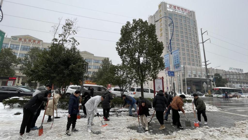 近日,湖北荆州遭遇大范围低温雨雪冰冻天气,道路积雪结冰给交通、居民出行带来了诸多不便。根据荆州市委《关于组织市直机关和企事业单位党员干部开展城区主次干道除雪破冰工作的通知》要求和学校工作安排,2月7日上午计算机科学学院以雪为令,广大党员教师迅速集结,在院长、书记的带领下积极参加除雪破冰工作。