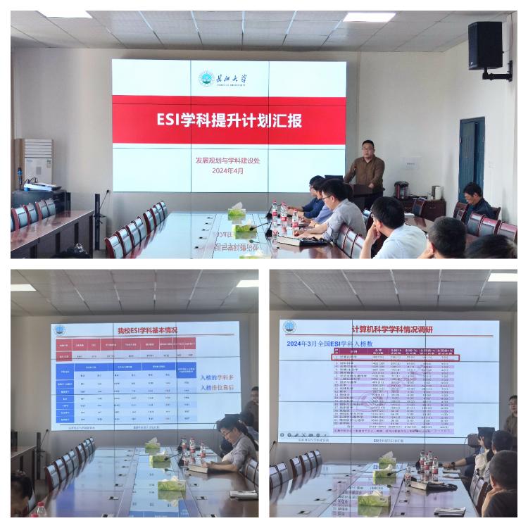 黑处长总结了全校ESI学科的基本情况,重点介绍了计算机科学学科ESI排名情况,指出计算机科学学科是我校ESI潜力学科中潜力值最高的学科之一,有望突破ESI前1%。
