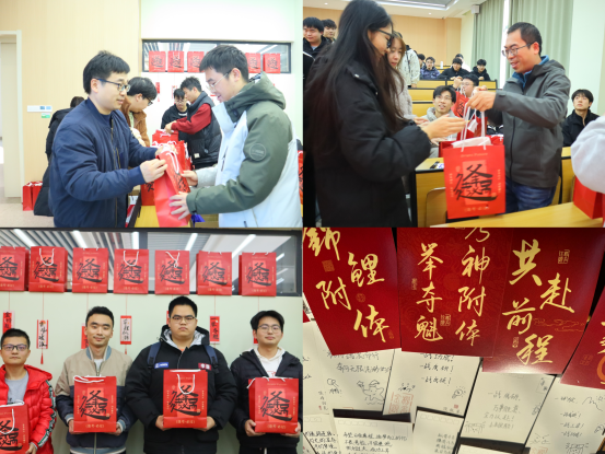 讲话结束后,崔院长为考研代表发放了精心准备的考研礼包,礼包内包含文具、水杯等实用物品,承载着学院对学子们的美好祝福。随后,班主任们也为现场学子逐一发放礼包,师生合影留念,定格下这温暖而励志的瞬间。