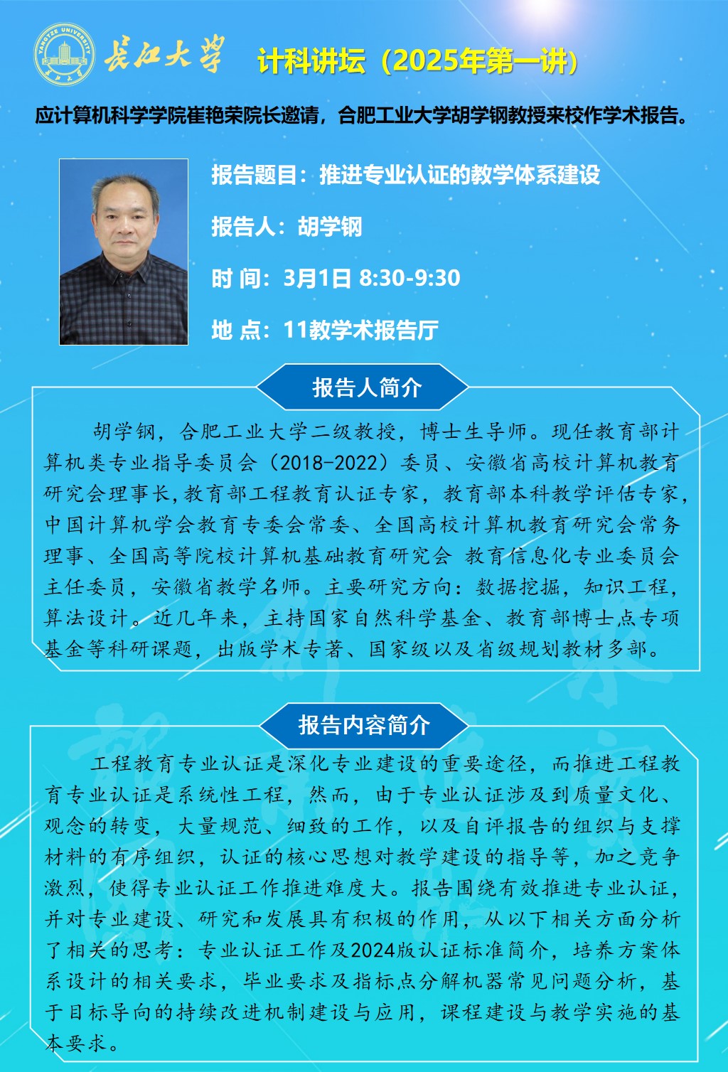 计科讲坛(2025年第一讲):推进专业认证的教学体系建设