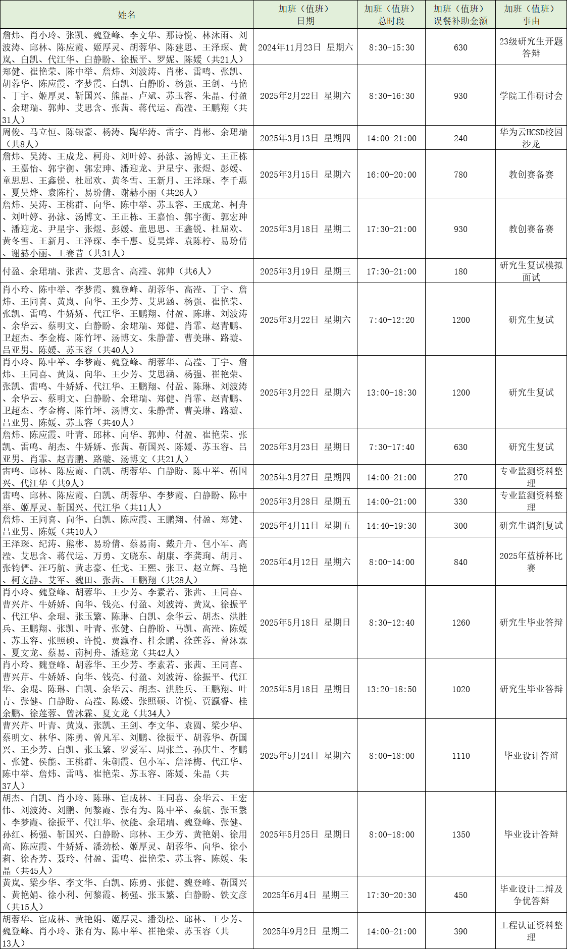 2025年研究生招生等工作加班(值班)误餐情况公示