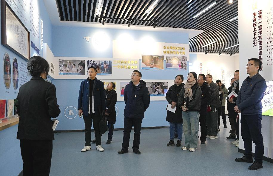 吕一兵与支部全体党员教师在讲解员的带领下参观了校史馆,对学校深厚的历史积淀、丰硕的办学成果和一代代长大人“求实、进取、创业、报国”的创业精神进行了深入学习和了解。