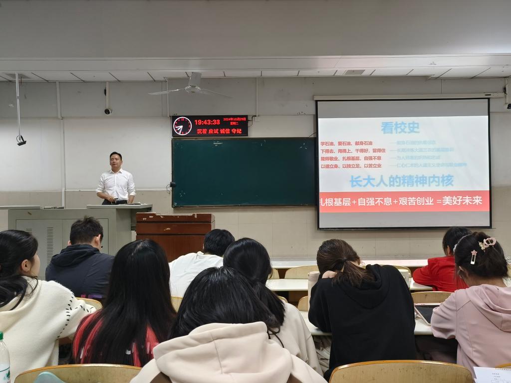 10月29日晚,学院党委书记郑健在12教104为入党积极分子、发展对象和预备党员讲授党的二十届三中全会专题党课,从党的二十届三中全会出发憧憬国家未来十年的发展盛况。