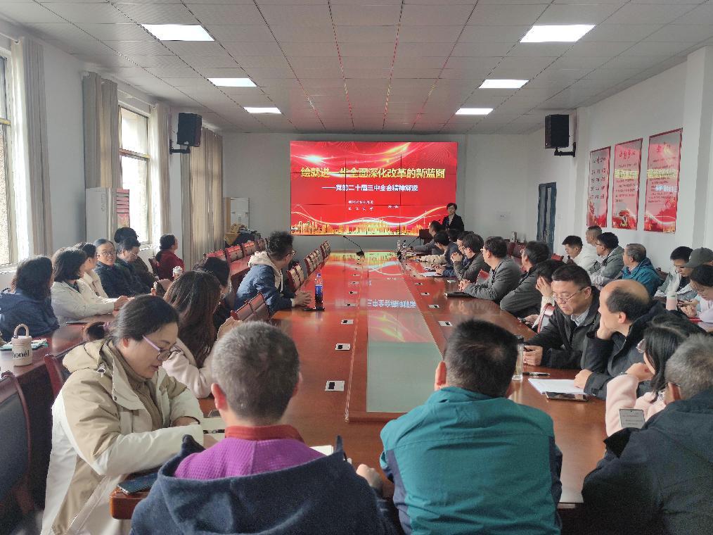 会议第三阶段,全院教职工共同观看中央党校(国家行政学院)研究室沈传亮主任的视频专题讲座——《深入学习贯彻习近平总书记关于全面深化改革的一系列新思想、新观点、新论断和党的二十届三中全会精神》。