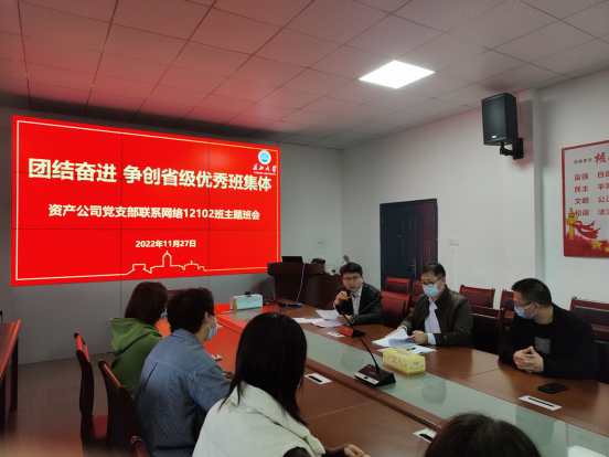 班会上,郝勇介绍了党支部联系班级相关事宜。他从此次主题班会的目的、如何创建省级优秀班集体以及对同学们的期许三个方面开展讲述。他讲到:“资产公司党支部作为学校的一个基层党支部,应该积极响应校党委的号召,主动作为,选择了网络12102班是一种缘分,希望通过这样的师生互动,达到共同进步”。同学们对郝勇老师提出的争创省级优秀班集体的目标表达了坚定的决心。为深入了解学生状况和班级状况,在班会现场,还组织发放了调查问卷。