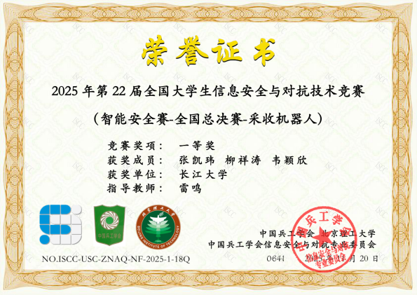 计科学子在2025年第22届全国大学生信息安全与对抗技术竞赛“智能安全赛”中获佳绩