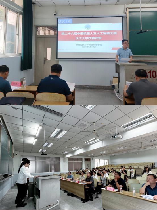角逐智能领域,弘扬创新精神。为引导和激励我校研究生参加科技创新赛竞赛,在研究生院的大力支持下,6月14日14:00,13教102,计算机科学学院承办举行了第26届中国机器人及人工智能大赛304永利集团登录入口校赛。邀请机械学院刘少胡教授、电信学院周箩鱼副教授、304永利集团登录入口赵鸣教授、白凯副教授以及付盈副教授担任赛事评委。